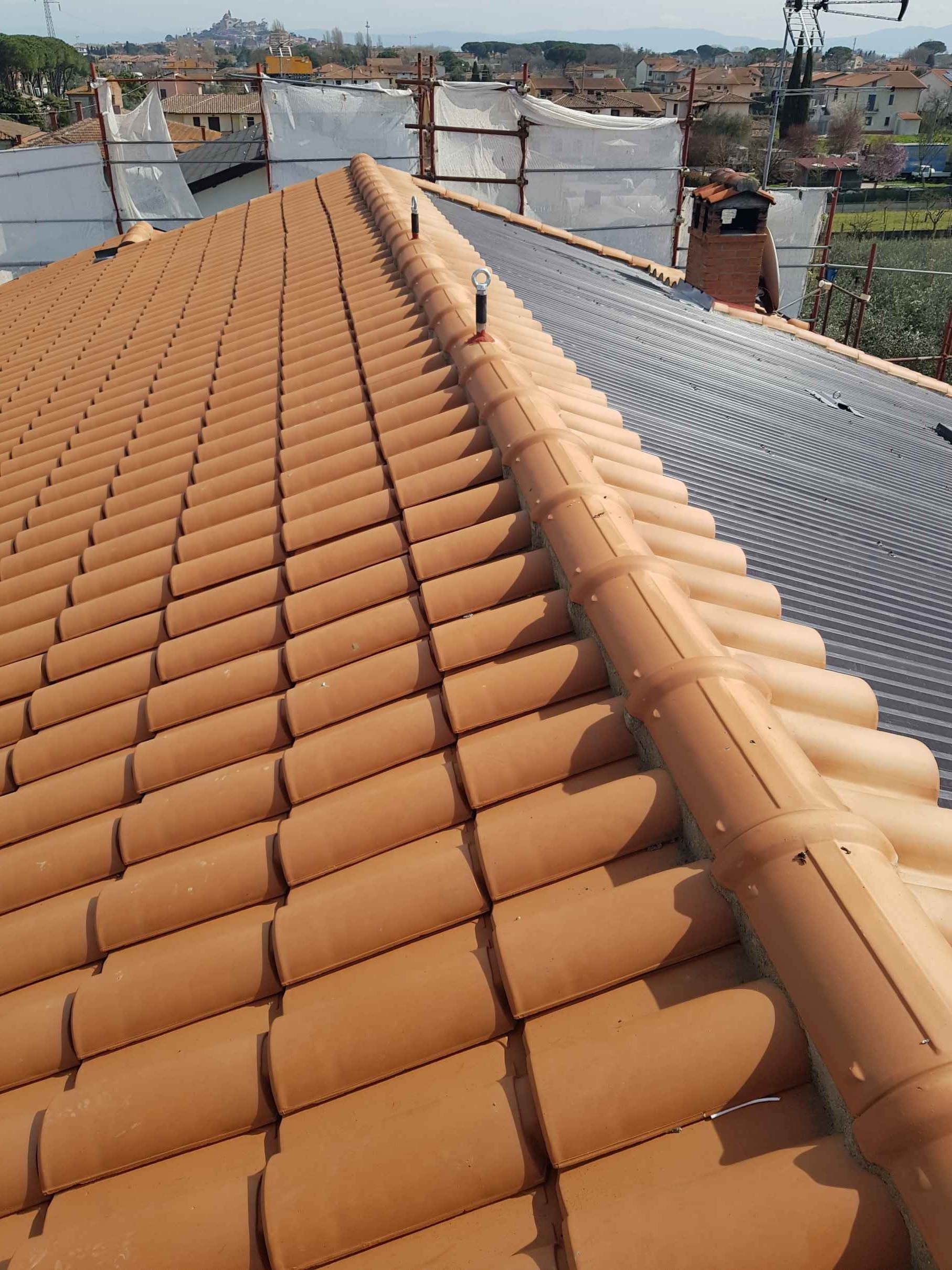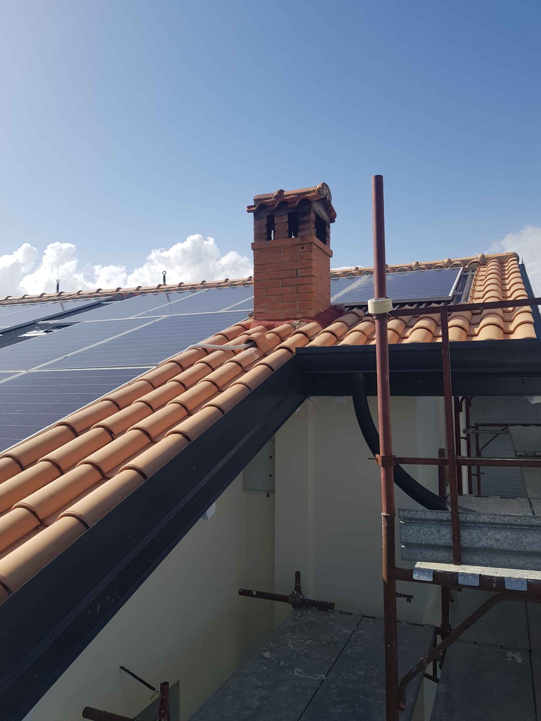 Lavori di rifacimento ed isolamento del tetto con preparazione della superficie per l’alloggiamento di impianto fotovoltaico, eseguiti per ridurre le dispersioni termiche e garantire una corretta base di posa dell’impianto.
